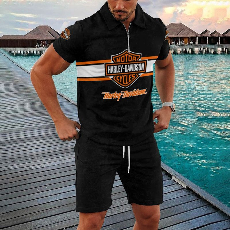 Harley Davidson Zipped Polo Shirt and Short Set NAJA93