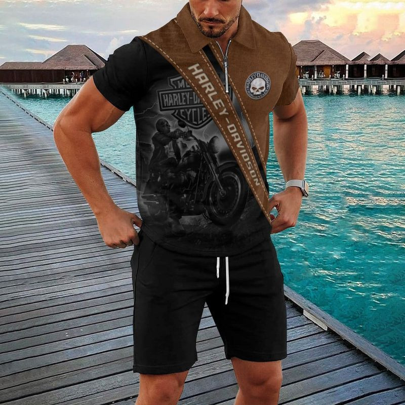 Harley Davidson Zipped Polo Shirt and Short Set NALA409