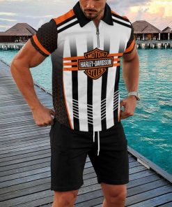 Harley Davidson Zipped Polo Shirt and Short Set NAQA517