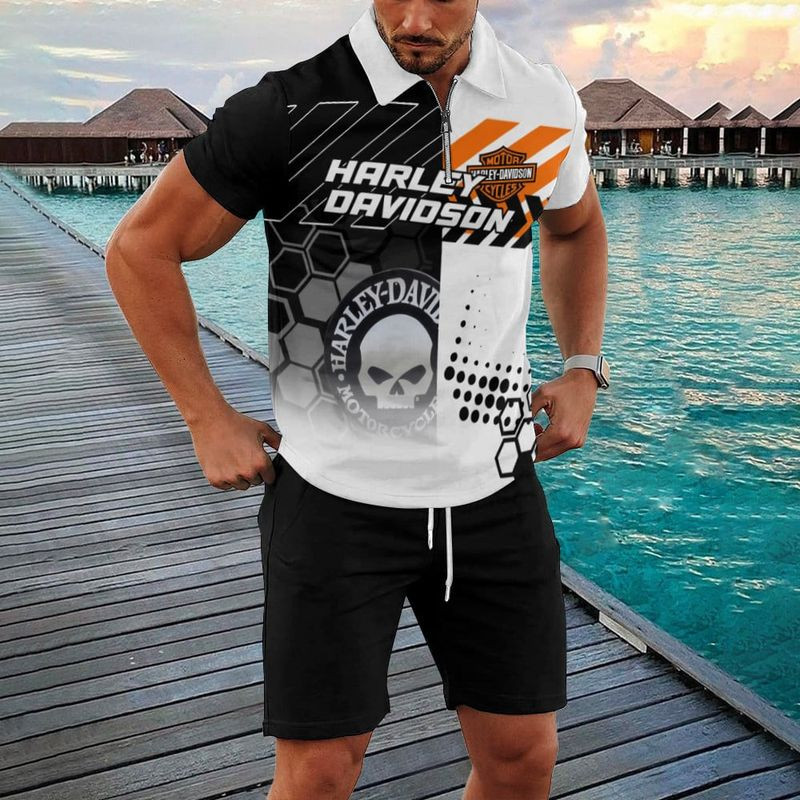Harley Davidson Zipped Polo Shirt and Short Set NAQA522
