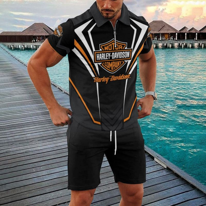 Harley Davidson Zipped Polo Shirt and Short Set NAQA524