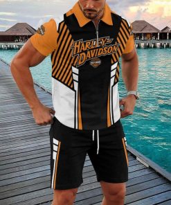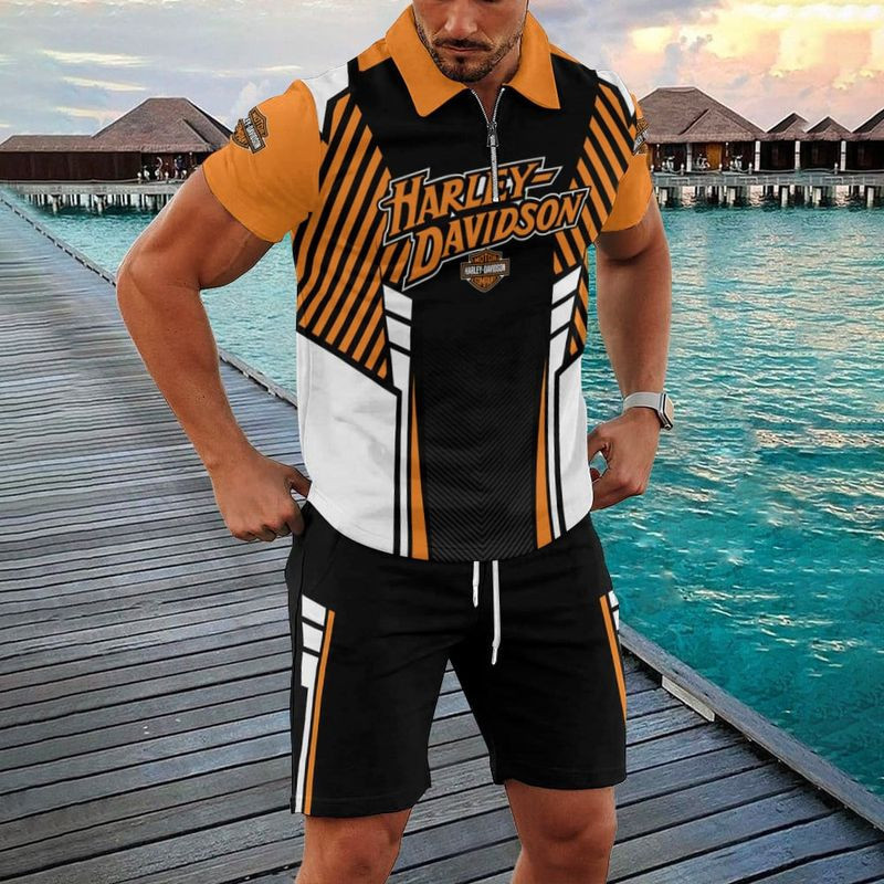 Harley Davidson Zipped Polo Shirt and Short Set NAQA525