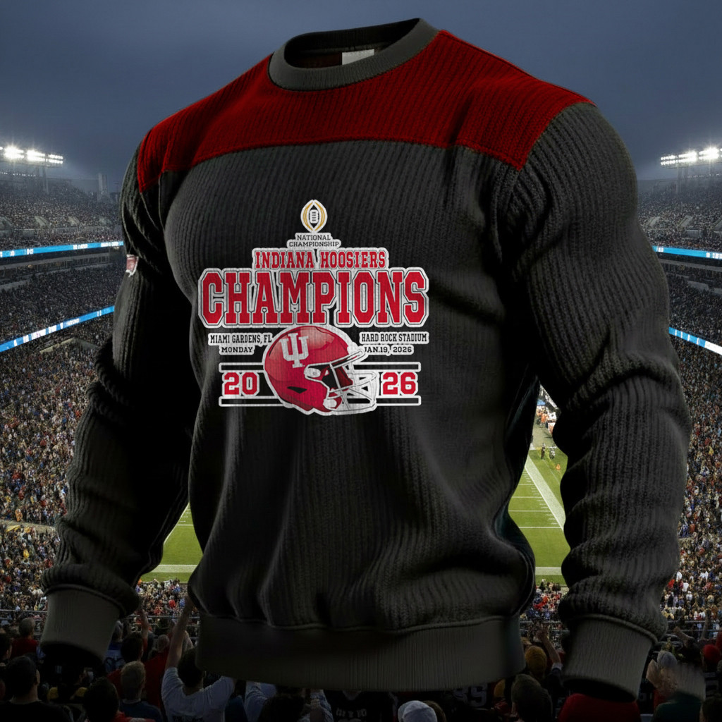 The Indiana Hoosiers champion designs feature strong team colors, iconic championship graphics, and bold typography that highlights the 2026 College Football Playoff victory. From all-over printed hoodies to premium sweatshirts, every detail reflects Hoosiers football legacy and the excitement of a championship moment.
