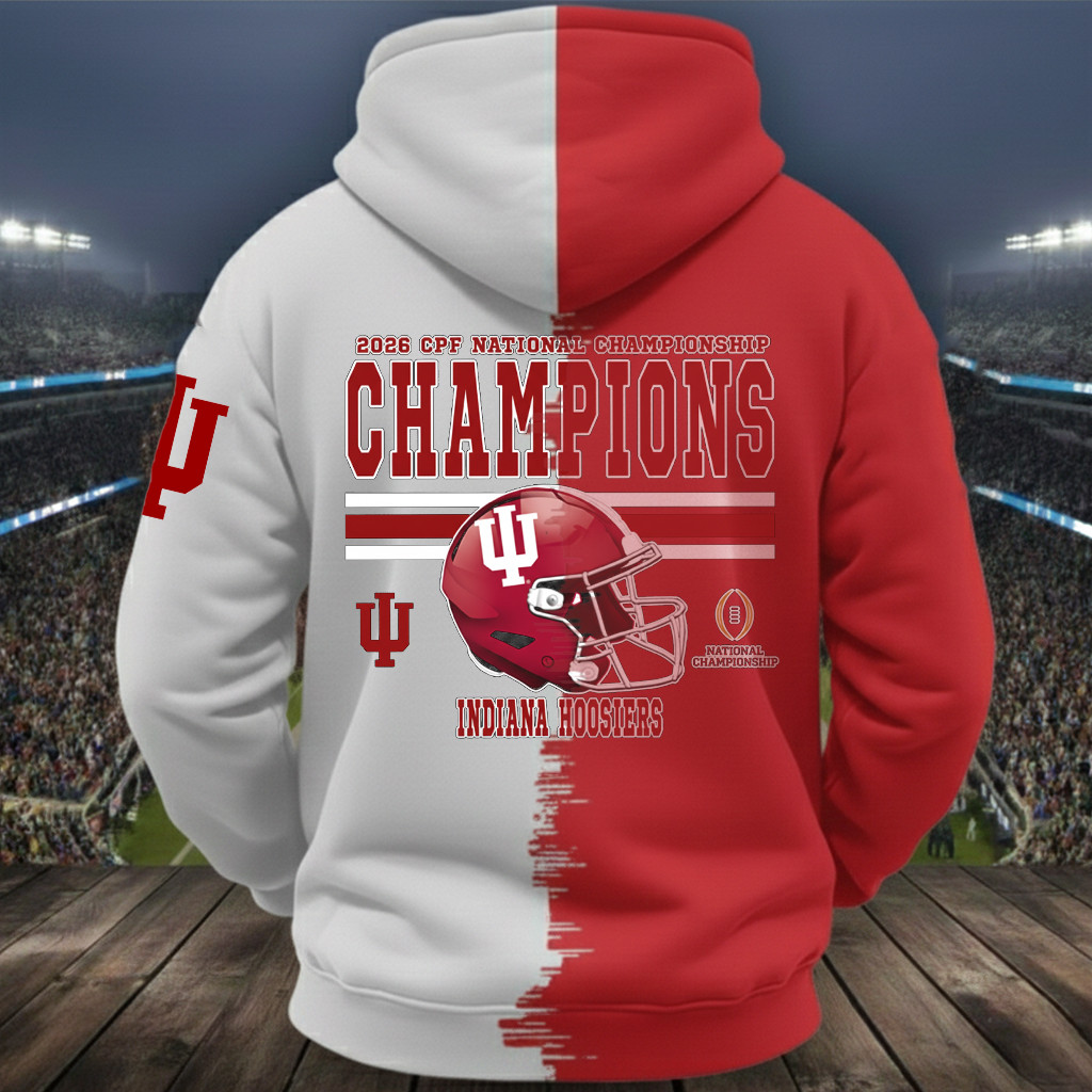 The Indiana Hoosiers champion designs feature strong team colors, iconic championship graphics, and bold typography that highlights the 2026 College Football Playoff victory. From all-over printed hoodies to premium sweatshirts, every detail reflects Hoosiers football legacy and the excitement of a championship moment.