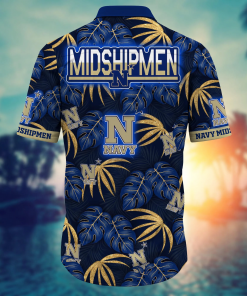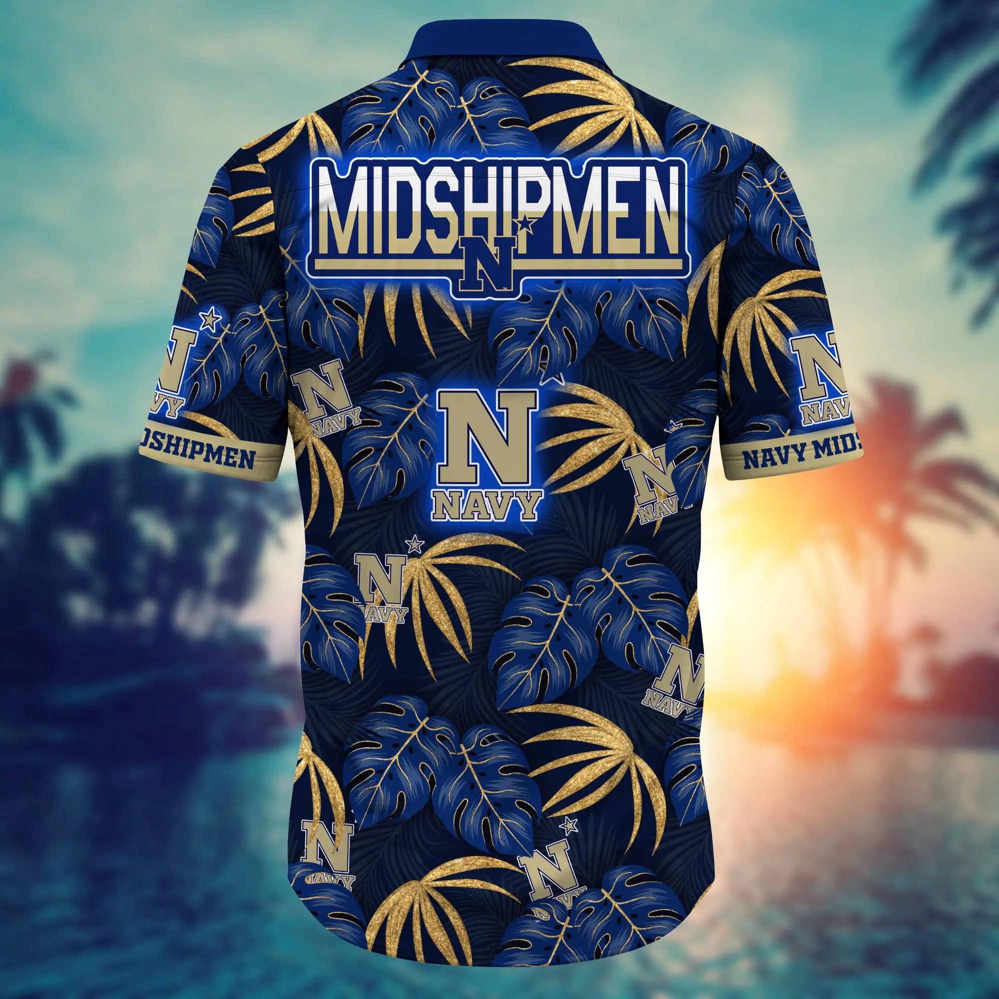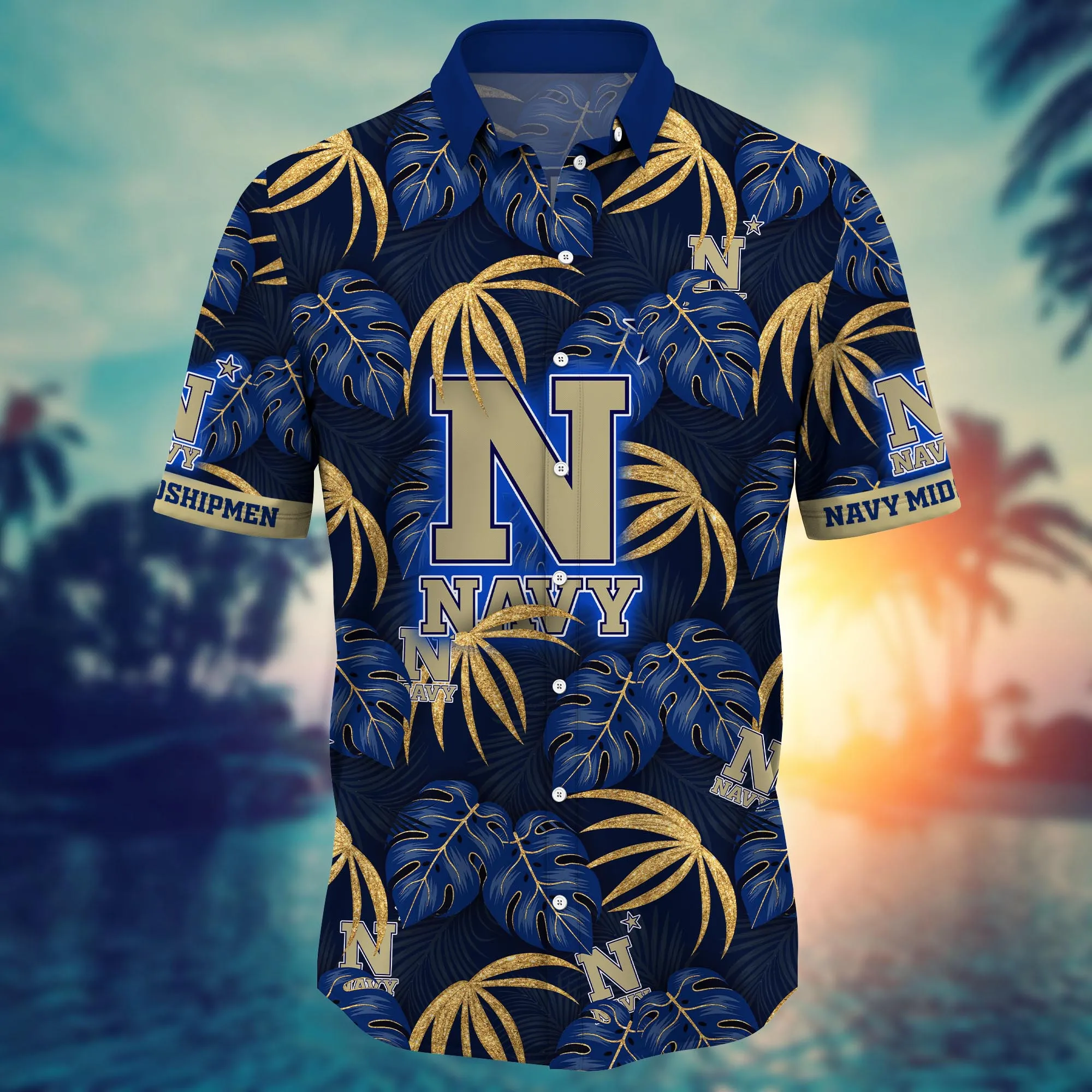 Navy Midshipmen Hawaiian Shirt Leafs Printed
