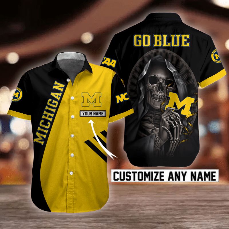 NCAA Michigan Wolverines Skull Button Shirt Design 3D Full Printed Custom Name Sizes S – 5XL N91805