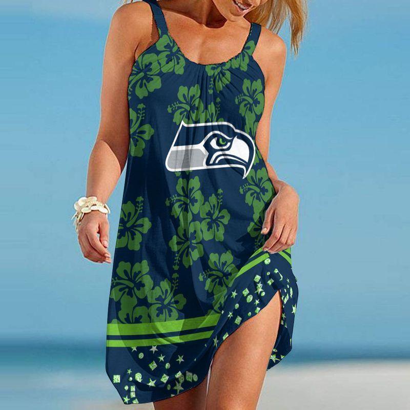 NFL Seattle Seahawks Hibiscus Stars Limited Edition Summer Beach Dress NLA007830