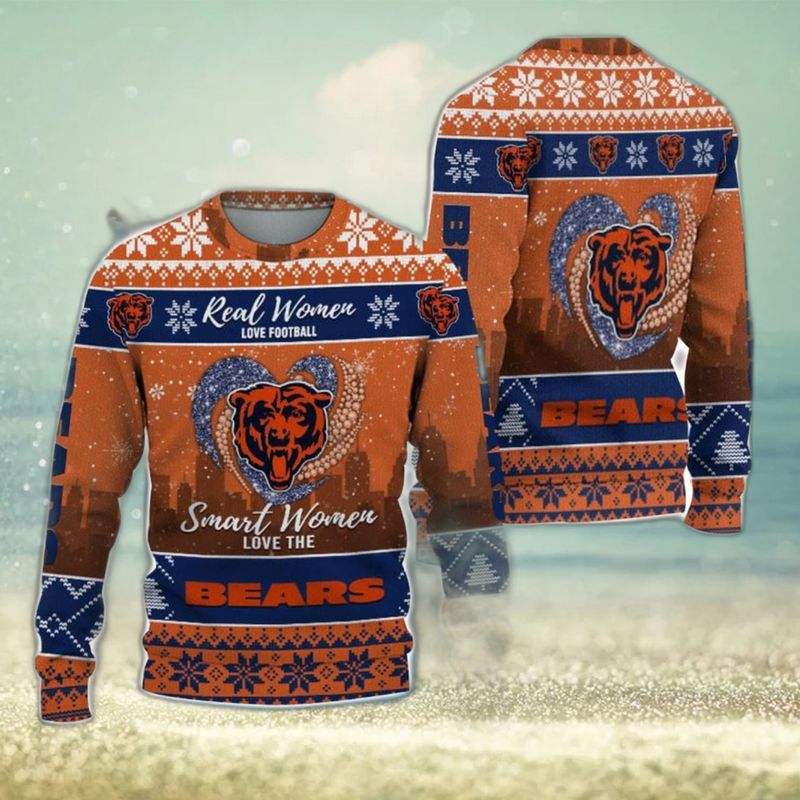 NFL Sport Chicago Bears Real Women Love Football Smart Women Love The Chicago Bears Christmas Sweater Design 3D Full Printed Sizes S – 5XL – NABI135