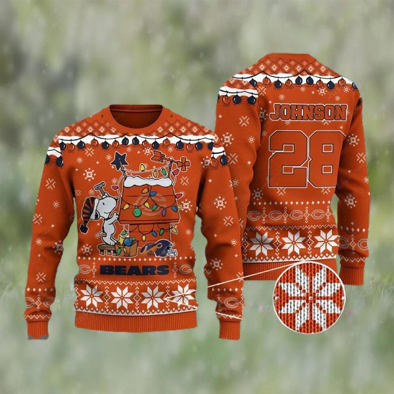 NFL Sport Chicago Bears Snoopy Christmas Custom Name And Number Sweater Design 3D Full Printed Sizes S – 5XL – NABI126