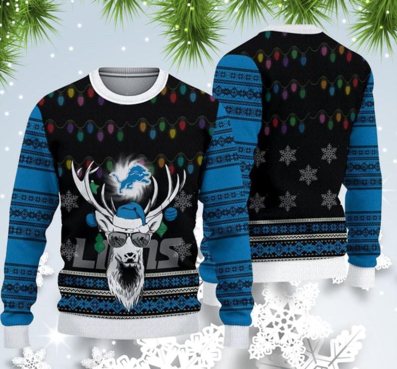 NFL Sport Detroit Lions Christmas Reindeer Sweater Design 3D Full Printed Sizes S – 5XL – NABL429