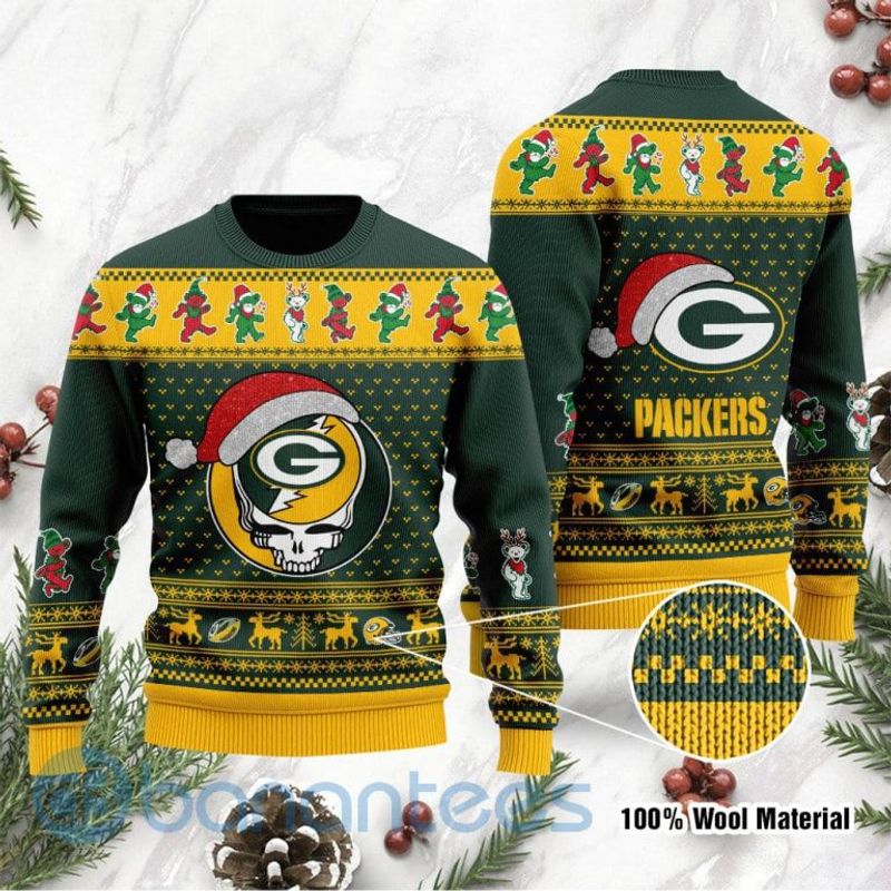 NFL Sport Green Bay Packers Dead SKull And Bears Christmas Sweater Design 3D Full Printed Sizes S – 5XL – NABQ122