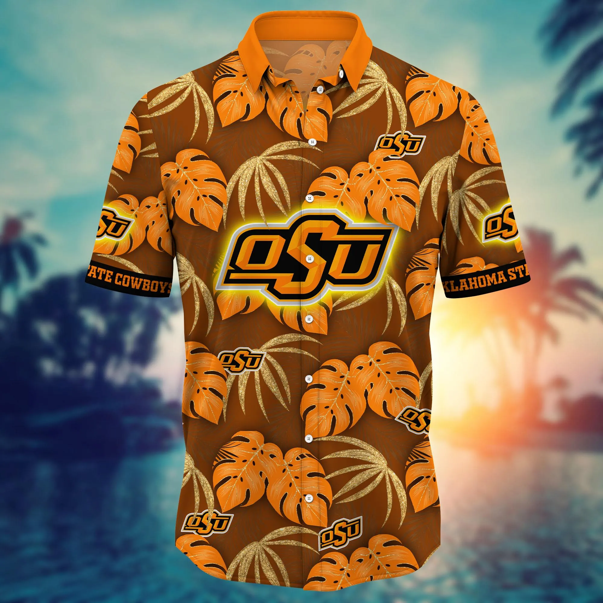 Oklahoma State Cowboys Hawaiian shirt leafs printed