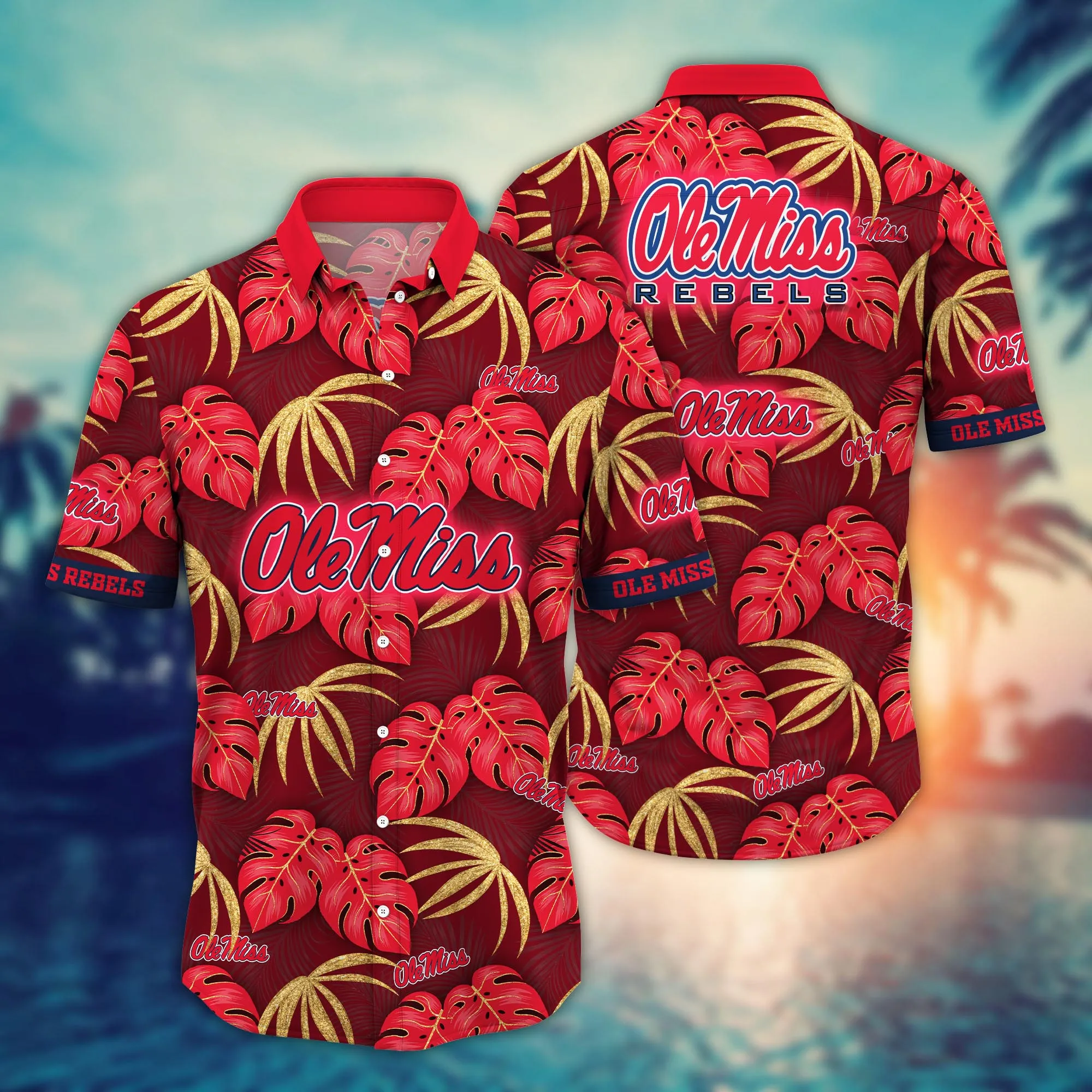 Ole Miss Rebels Hawaiian shirt leafs printed