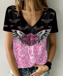 Harley Davidson Motorcycle Custom Name Women V-neck T-shirt NABS74