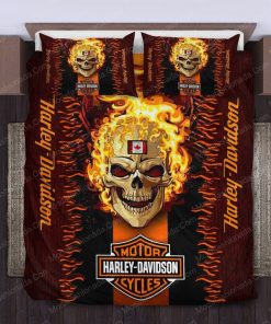 Harley Davidson Skull Fire Canadian Flag Bedding Set Cover Design 3D Perfect Gift – NAAD85